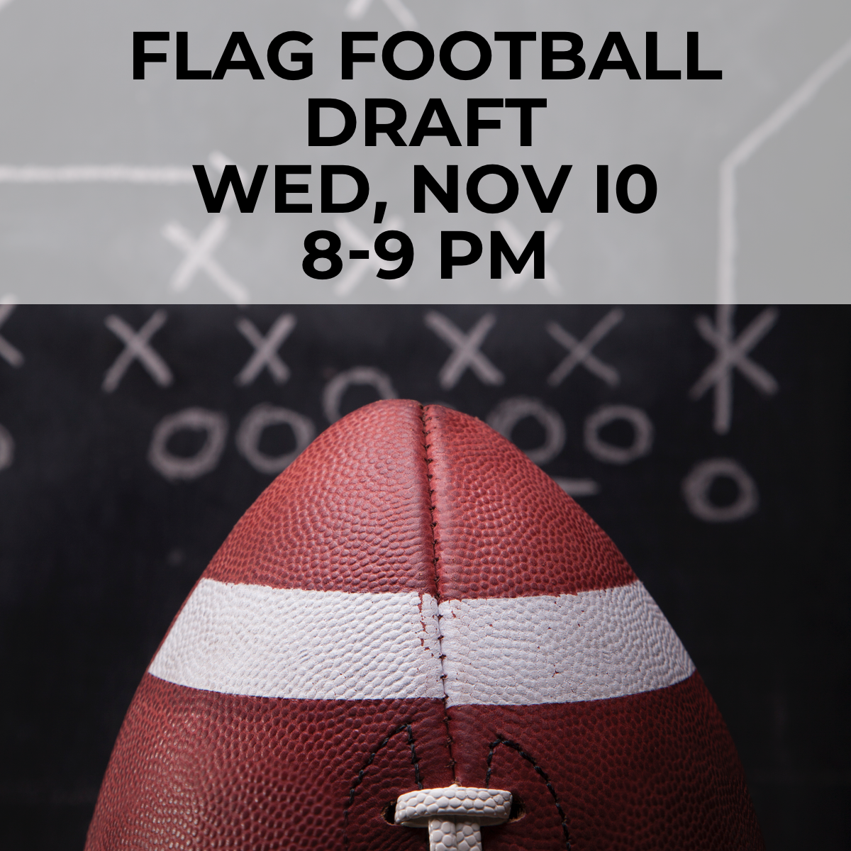 Flag Football Draft (Team Captains Only) at Solid Rock Cafe from 8-9 PM.
